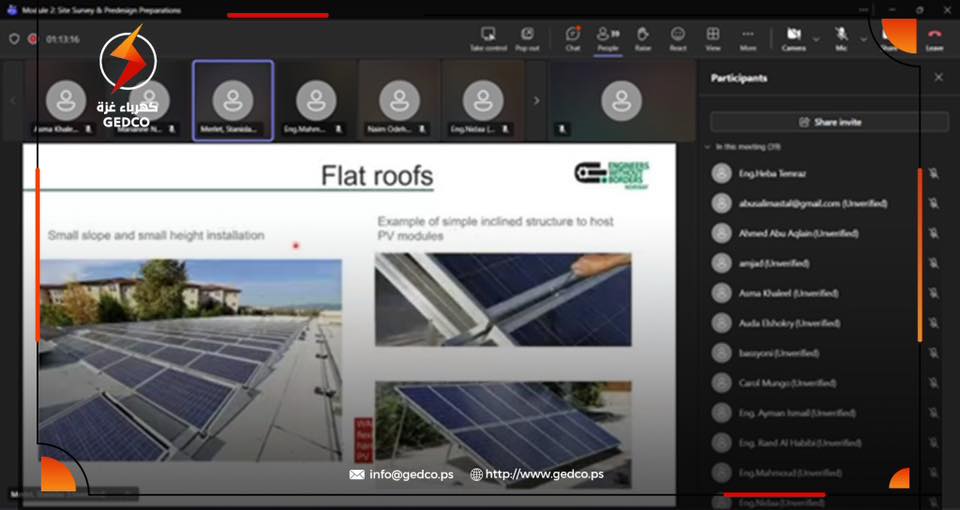 The training was conducted remotely and focused on the design, operation, and maintenance of solar energy systems, within an integrated training program implemented in multiple phases.