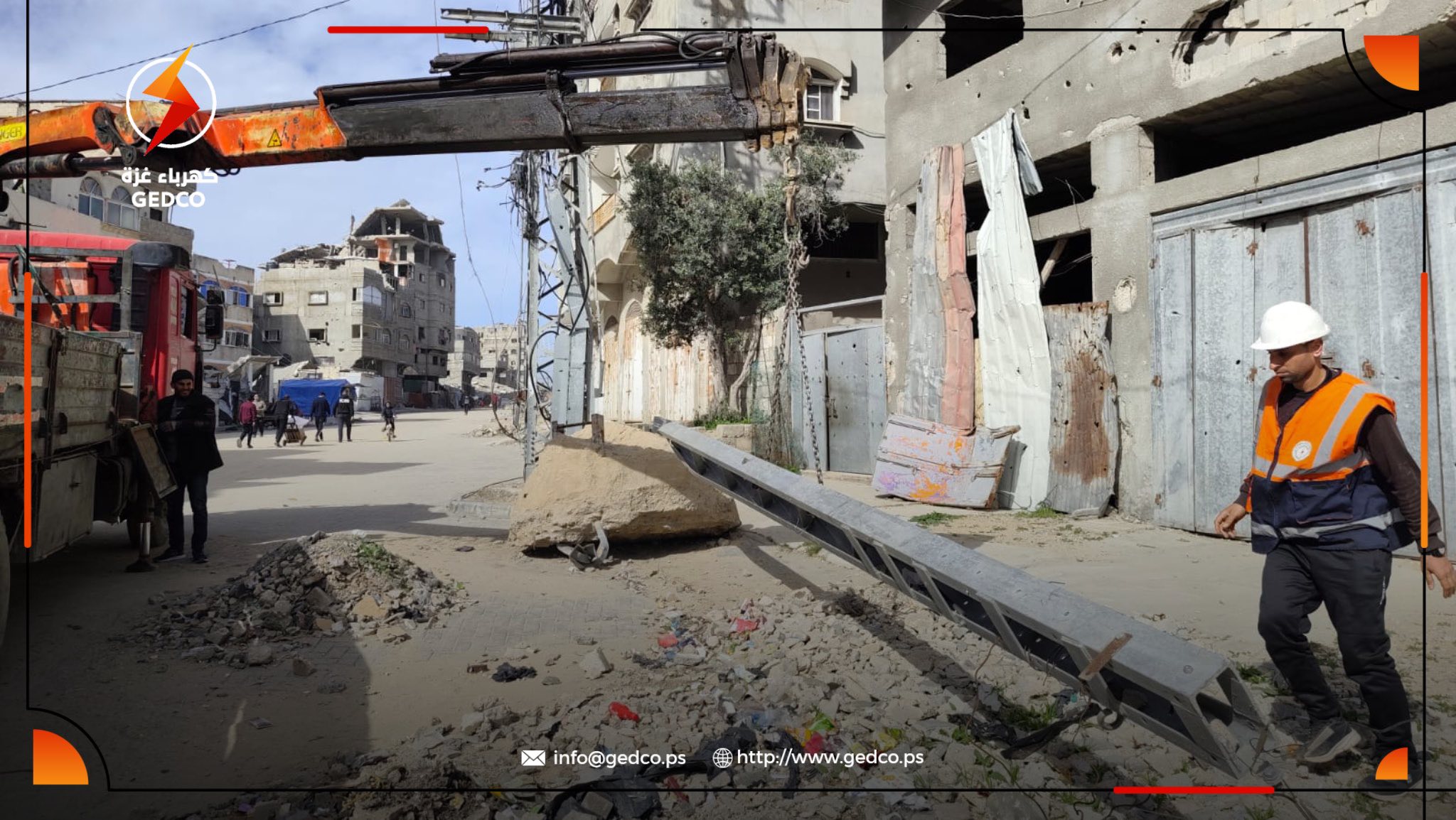 GEDCO teams carried out urgent emergency interventions in northern Gaza to remove dangerous hazards from heavily damaged power networks—threats that put lives at risk and obstructed the safe movement of pedestrians and vehicles.