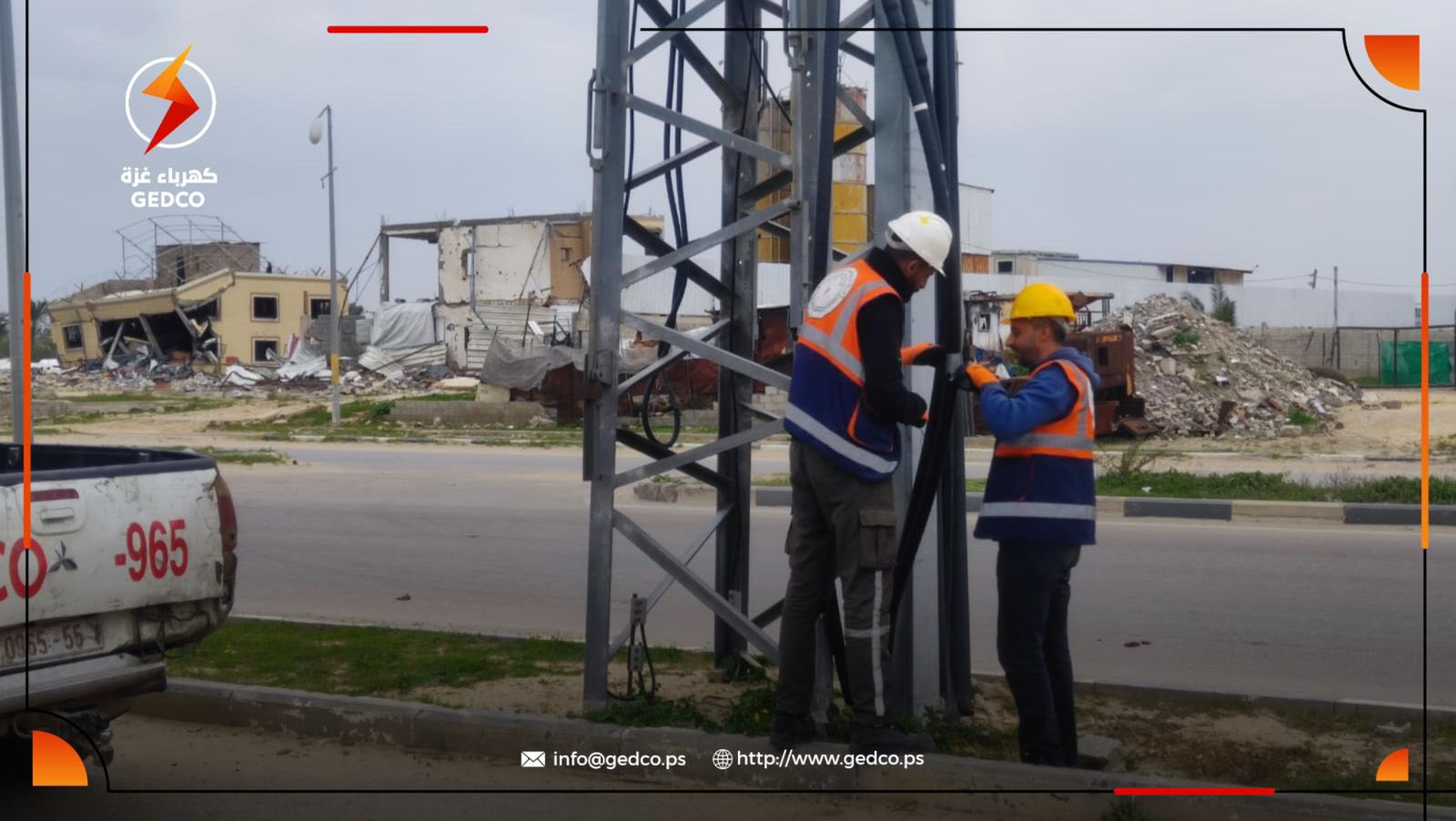 Because water means life, and amid extremely harsh conditions, GEDCo teams—supported by UNICEF—are carrying out intensive technical inspections and monitoring of the F11 power line supplying the desalination plant south of Deir Al-Balah, to ensure safe and continuous electricity and enable the plant to provide clean water to thousands of families.