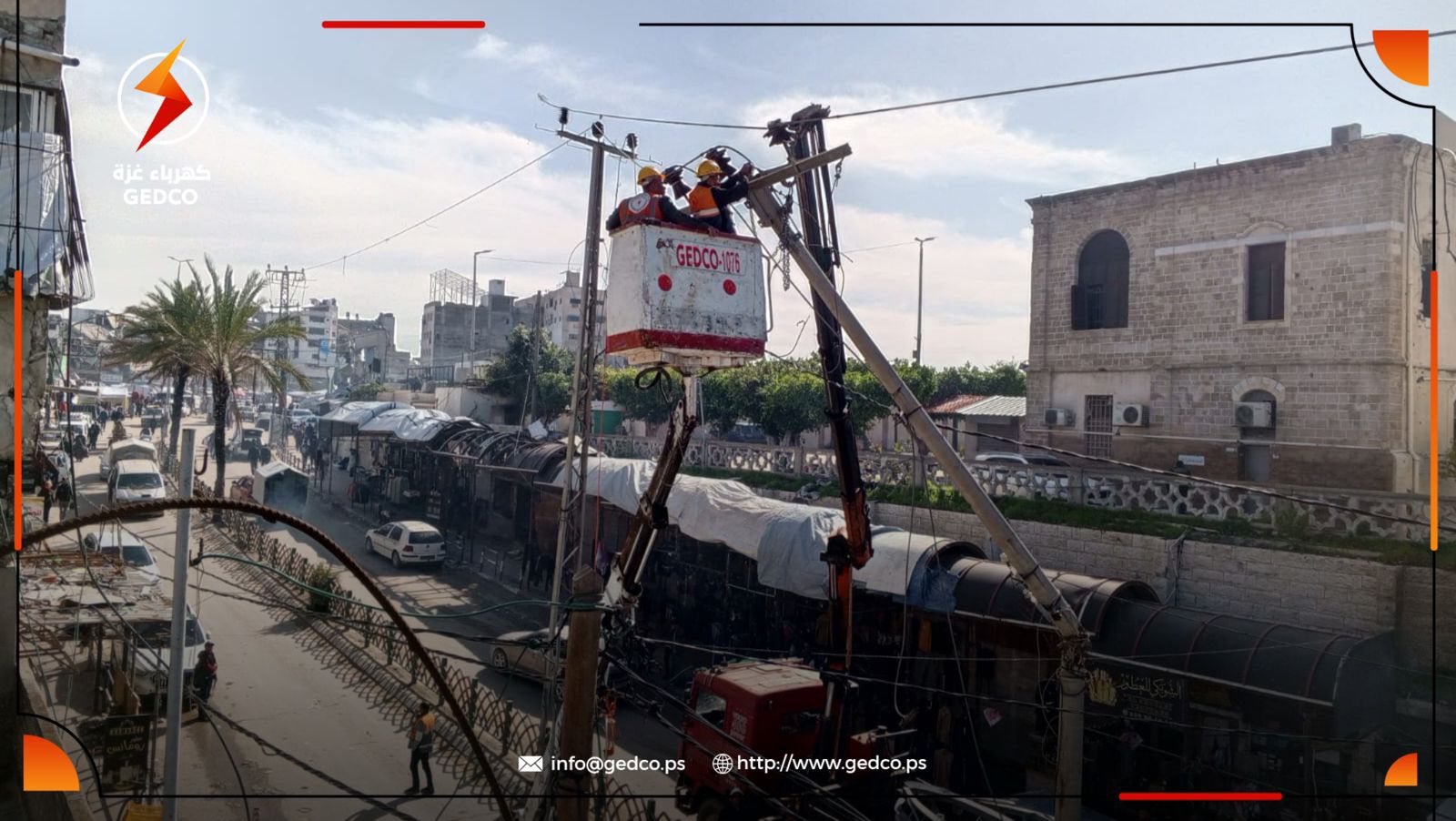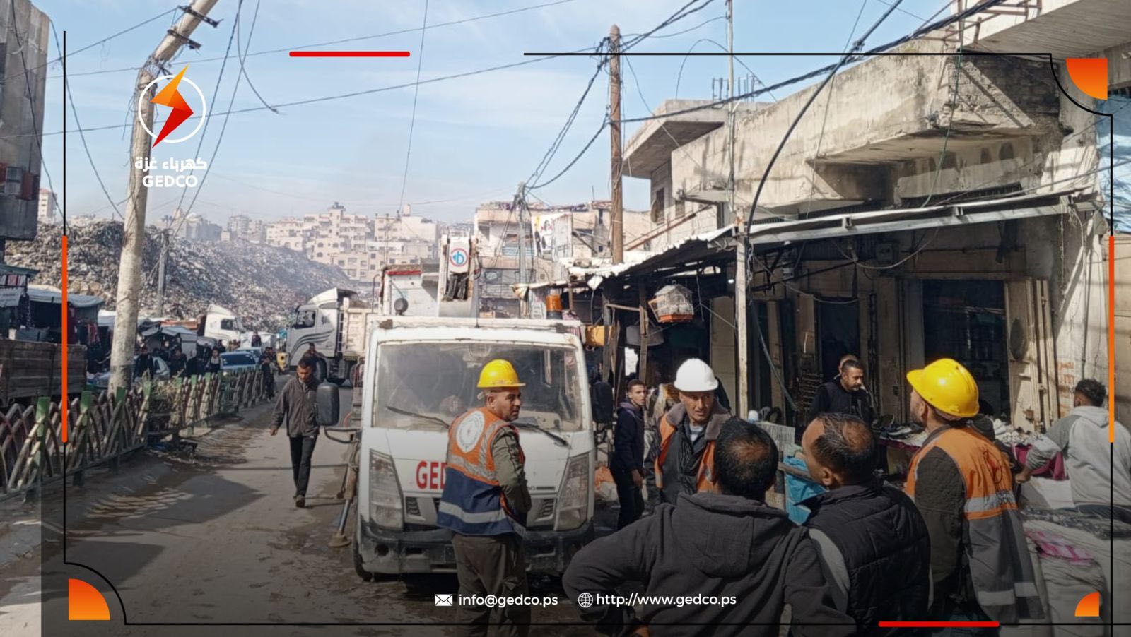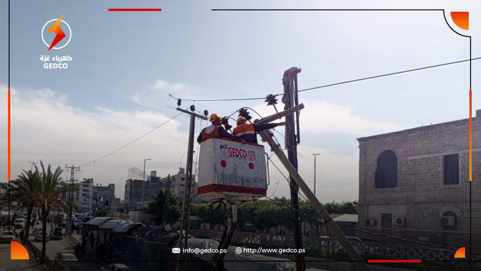 In response to urgent appeals from residents, Gaza Electricity Distribution Company (GEDCO) carried out an emergency field intervention in Tel Al-Hawa and Al-Rimal areas, removing and securing heavily damaged electricity poles that posed an immediate threat to civilians and surrounding homes.
